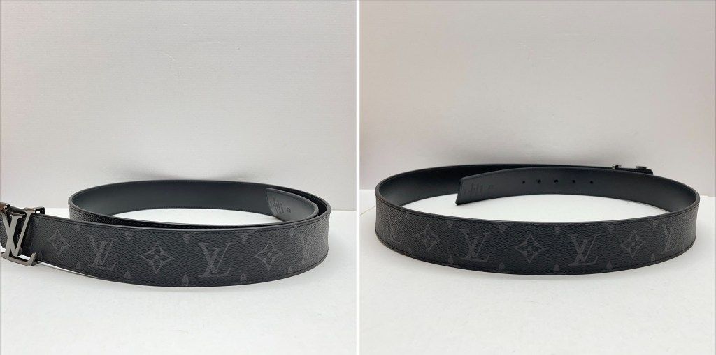 01 w-5474 ルイ ヴィトン LOUIS VUITTON モノグラム エクリプス ベルト・LV イニシャル 40 MM リバーシブル 箱 保存袋あり スペイン製 メンズ ベルト M 9043 品