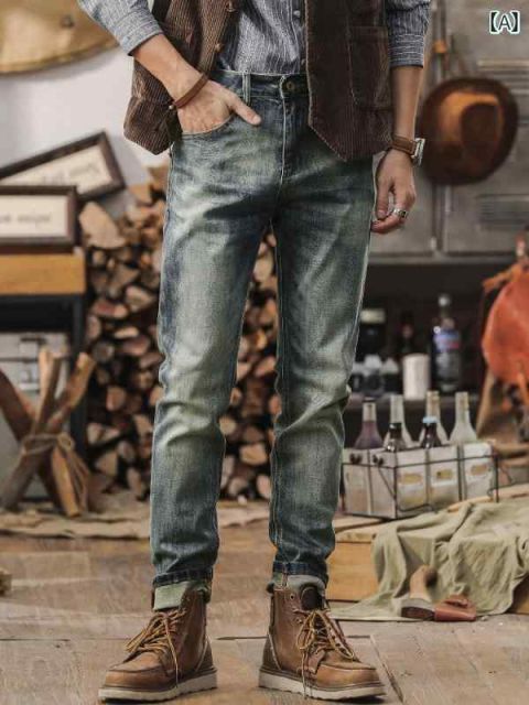 秋冬 メンズ 服 シンプル ファッション オシャレ 大人 かっこいい 大きいサイズ ストリート 紳士服 アメリカン レトロ ジーンズ ストレート レッグ 秋 カジュアル パンツ ウォッシュ加工 ダメージ