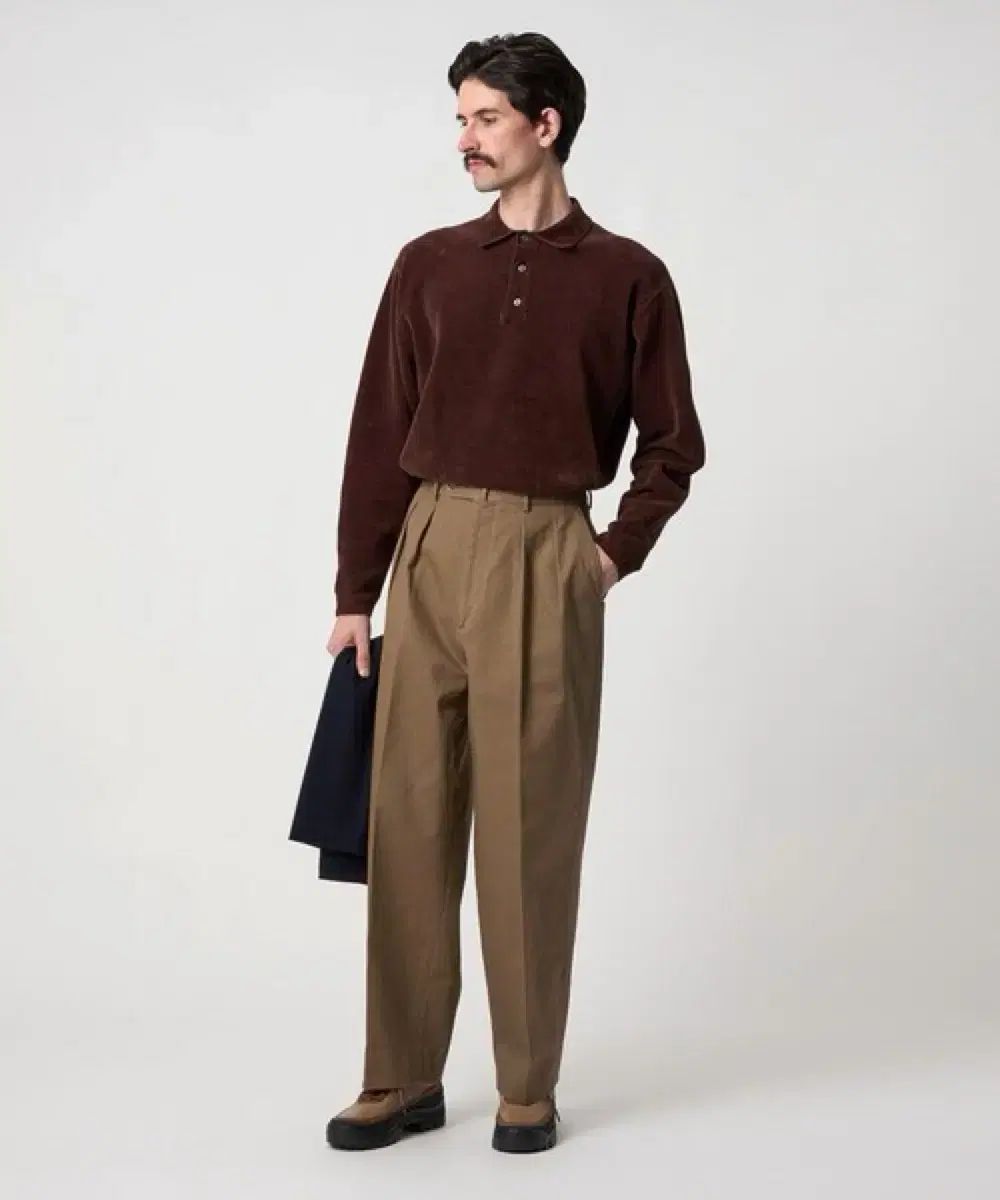 しっかり素材のコットンパンツで、ワイド テーパードフィットです。