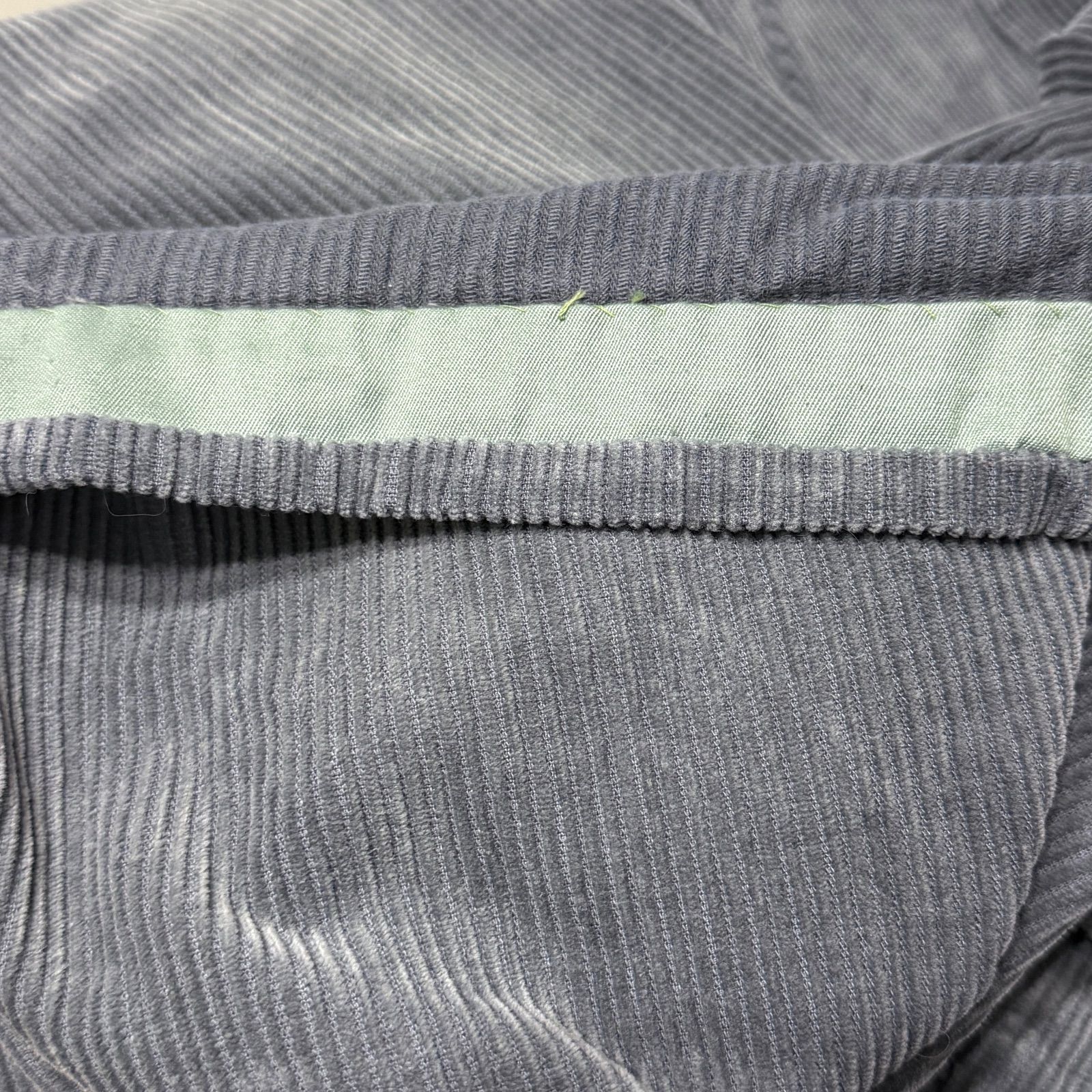 ブルーのコーデュロイ生地が味わい深く、太めのシルエットが90年代らしいリラックス感を演出します。