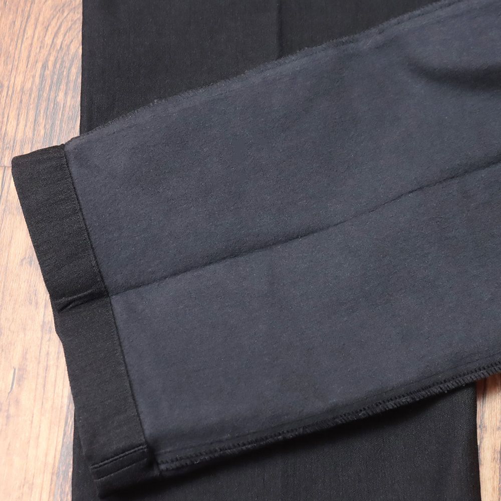 生地にはストレッチ性を備えたヘリンボーン織りの裏起毛素材を採用。しなやかなハリと上品な織り柄が大人の装いに洗練された雰囲気を添えます。表面はさらりと清潔感のある肌触りで、裏面にはふんわりとした起毛加工を施しており、高い保温性と穿き心地の良さを同時に叶えました。寒さの厳しい季節にも暖かくご着用いただけます。