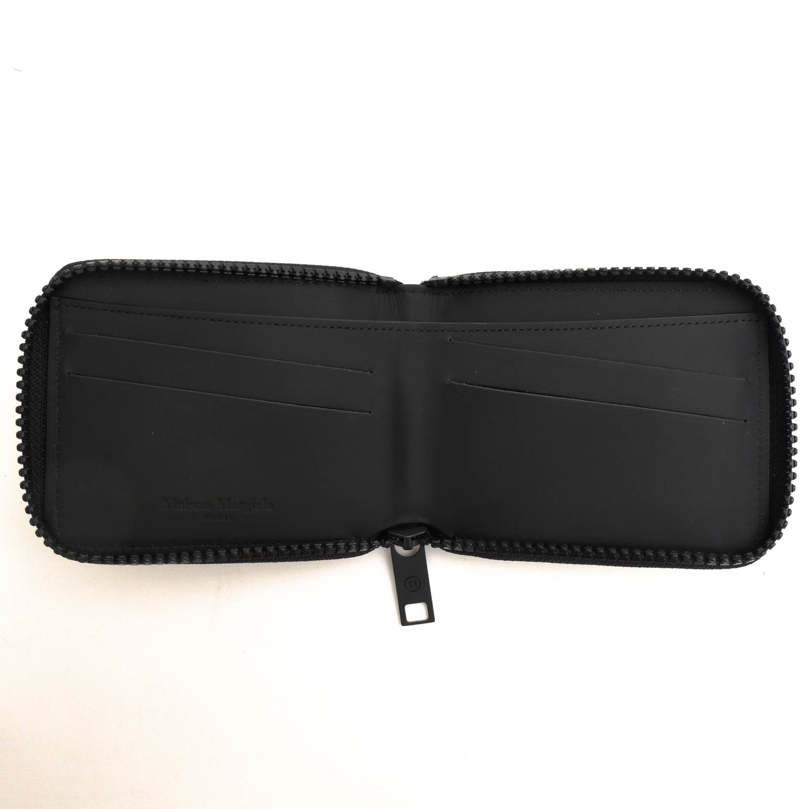 メゾンの象徴である4本ステッチとカレンダーロゴがデザインされたラウンドファスナーウォレット。内側には複数のカードスロットと札入れを備え、機能性も十分。マルジェラのアイコニックなステッチも忘れずにアクセントとして施されており、ブランドのアイデンティティを感じさせます。