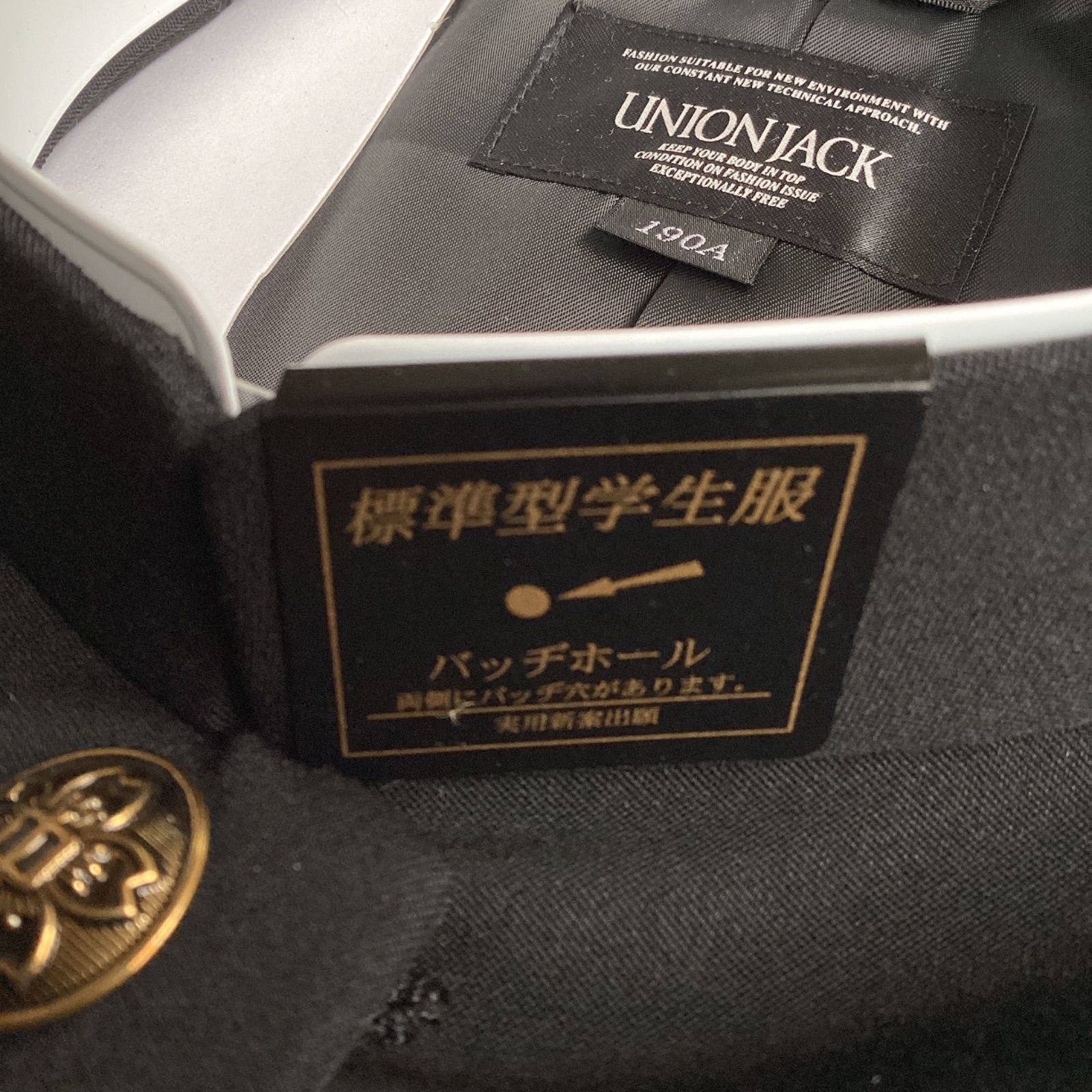 男子 学生服 190A 襟 1808 学生 学ラン 詰襟 標準型 ポリエステル80% 毛20% UNIONJACK DEEPBLACK