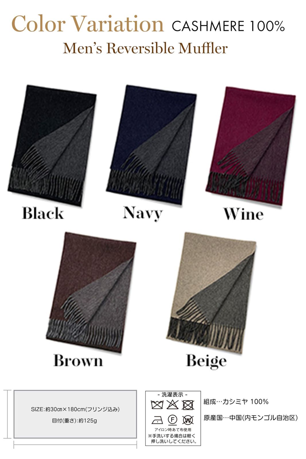 Natur ヴィタ ナトゥール 上カシミヤ100% リバーシブルマフラー メンズ リバーシブル Vita マフラー 無地 チェック 180 cm×30 cm 全