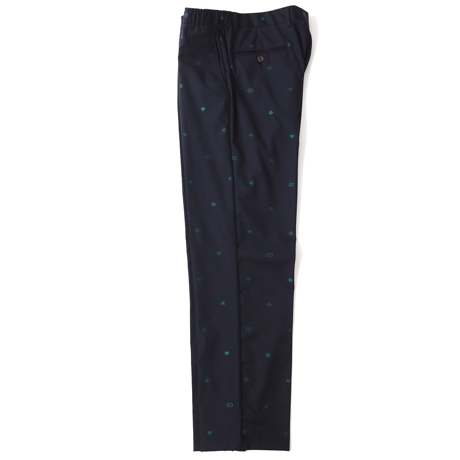 グッチ GUCCI ウール Bee刺繍 イージー スラックス トラウザー 50 ダークネイビー メンズ 5-YI 009