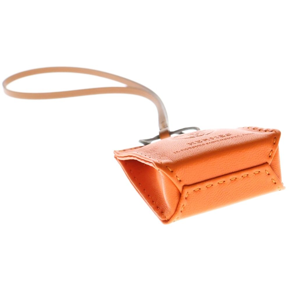 HERMES エルメス サックオランジュ アニョーミロ レザー ショッパー バッグチャーム オレンジ ブラウン Y刻印