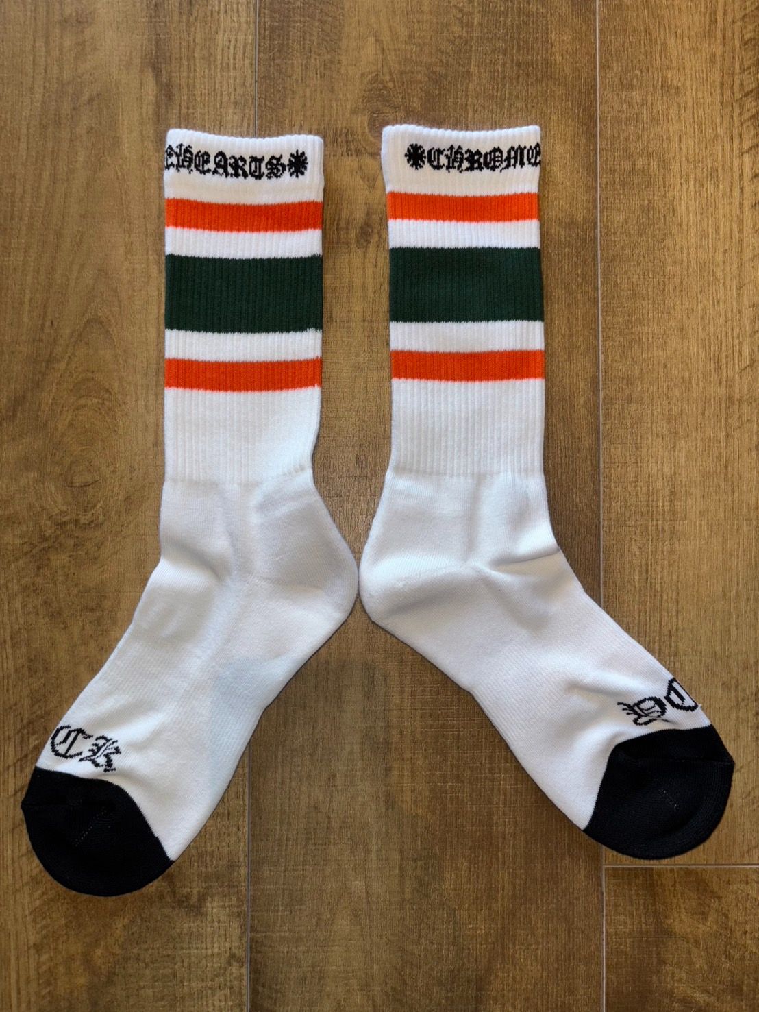 CHROME HEARTS クロムハーツ Socks ソックス 靴下 ライン ボーダー 白 ホワイト オレンジ カーキ Mサイズ