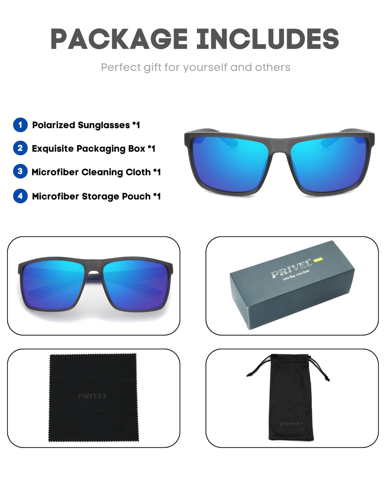 PRIVEL XXL サイズ 特大 159 mm スポーツ偏光サングラス ビッグワイドヘッド メンズ TR 90 アウトドア サイクリング ランニング 釣り ラバークリアダークグレー 偏光ブルーミラー Ext