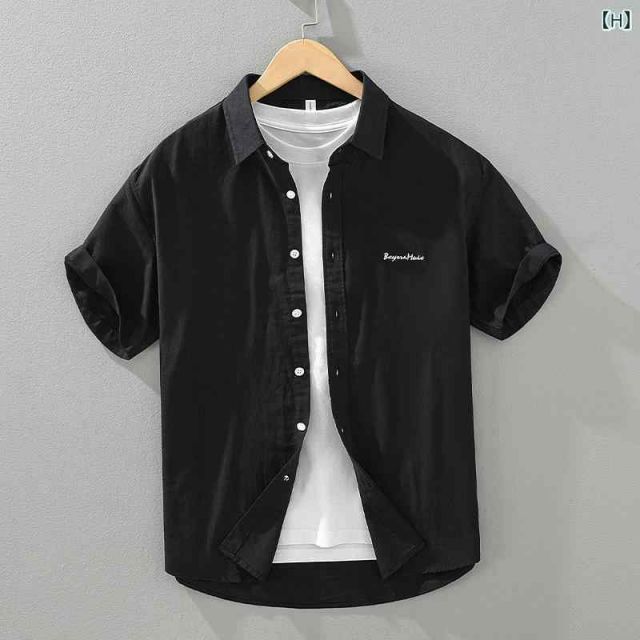 XL メンズ ファッション 服 男性用 オシャレ シンプル 大人 かっこいい 大きいサイズ ストリート 紳士服 無地 刺繍 半袖 シャツ 夏 薄手 フレッシュ レトロ カジュアル トップス