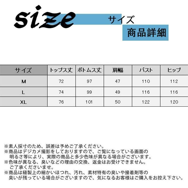 XL:バスト-122 肩幅-50 ス丈-76 ヒップ-120 ボトムス丈-101 参考体重:75-95kg