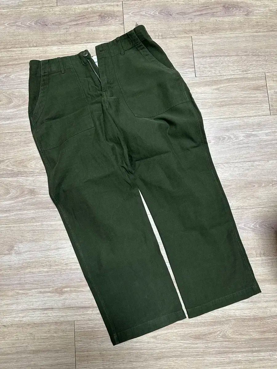 エスピオナージ ワイド ベイカー パンツです。ゆったりしている フィットで快適に 着用可能です。オリーブ カラーなので どの 服にでも よく 合います。コメント 無ければ 馬狼 照英 安全決済してください!