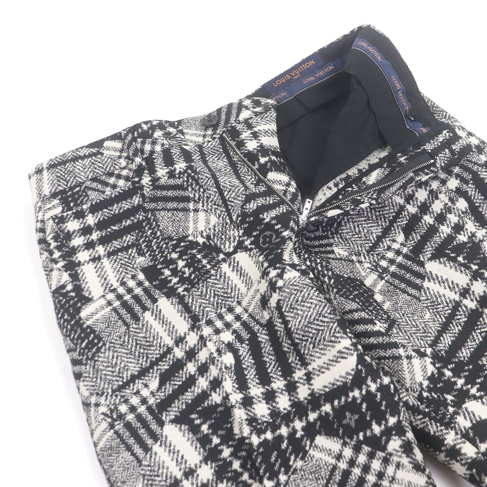 LOUIS VUITTON ルイヴィトン 20 AW モノグラム 総柄 トラウザーズパンツ シングル スラックス ホワイト ブラック 40 イタリア製 メンズ