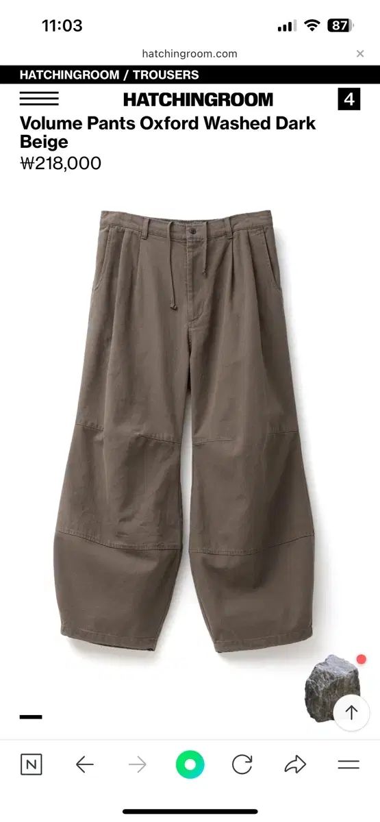 3 ハッチングルーム ボリューム パンツ オックスフォード ウォッシュド DARK ベージュ