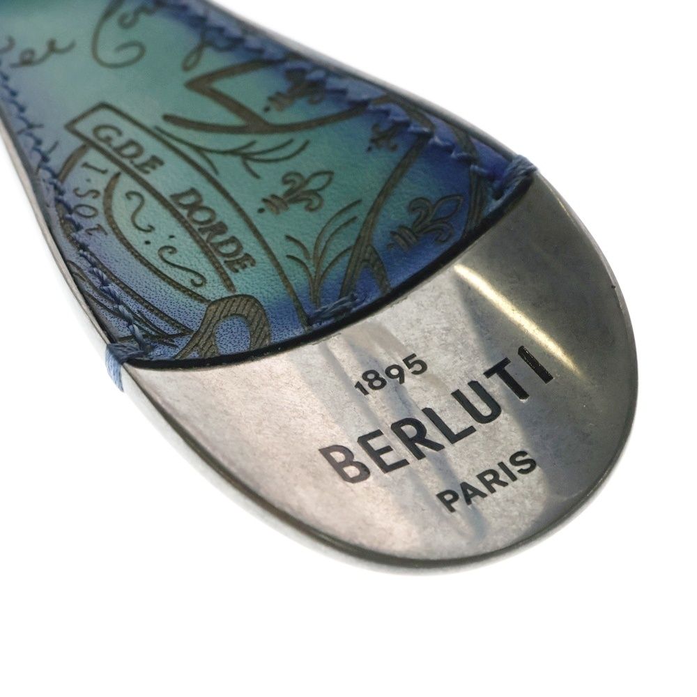 Berluti ベルルッティ スクリットレザー カリグラフィ メタルシューホーン 靴べら キーリング ブルー シルバー