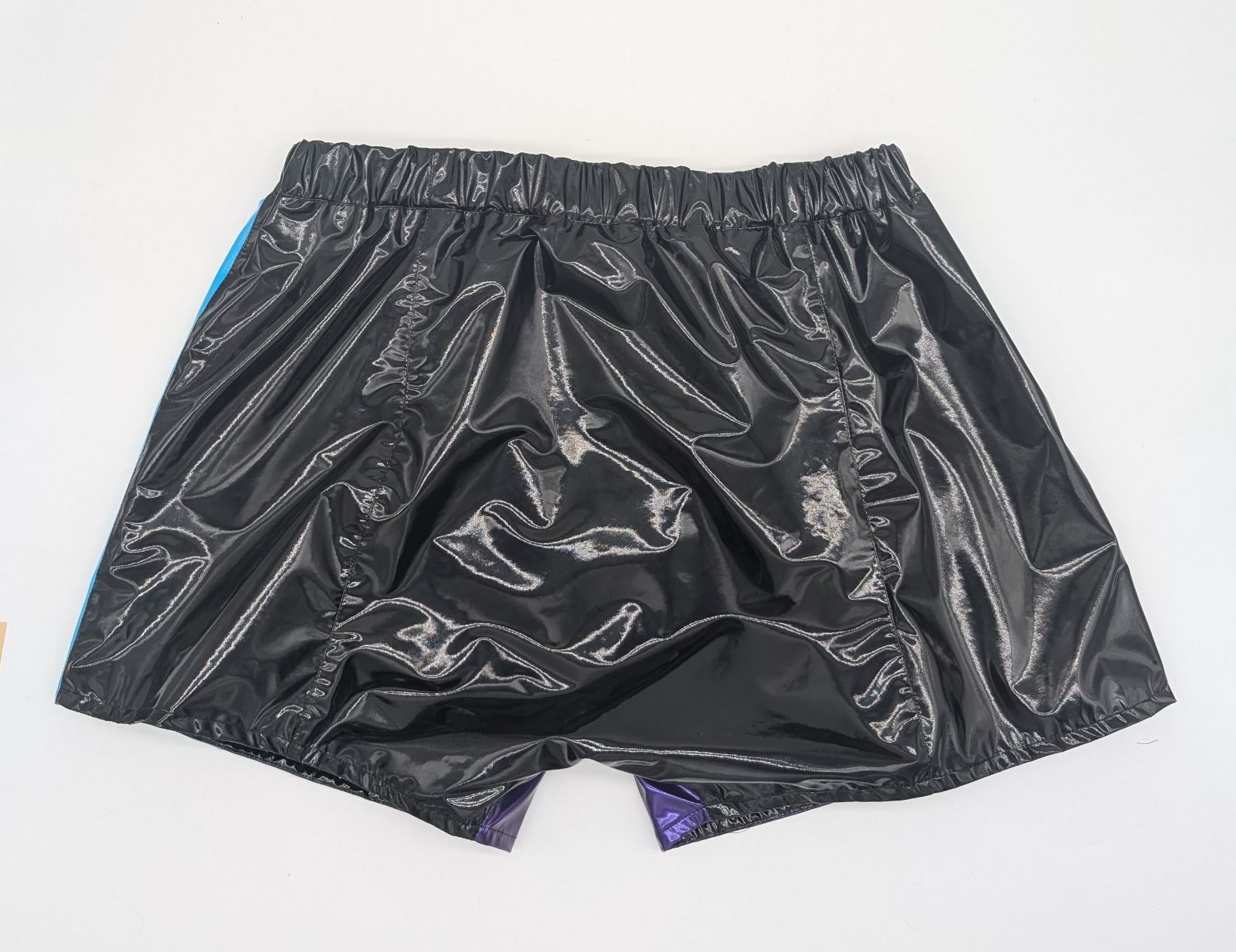 メンズエナメルアンダーパンツ カラフルタイプ エナメル裏地付き ナイトウェア ホットパンツ 表地 紫 黒 青 パールブルー 水色 裏地 メンズL LL 3 L 4 Lサイズ ハンドメイド 受注生産 4Lのみ 可