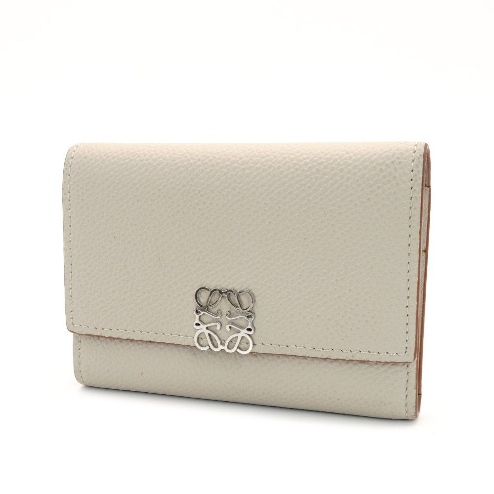 ロエベ LOEWE アナグラム スモール バーティカル 折り財布 コンパクト ウォレット ミニ財布 ベージュ レザー 7-10-430