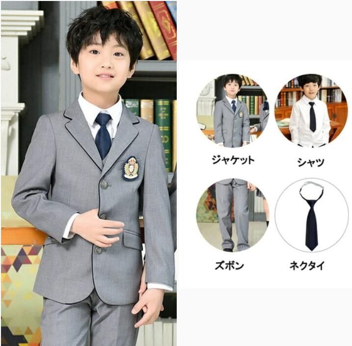 制服 4点セット 卒業式 入学式 子供 男の子 ジュニア キッズ フォーマル カジュアル 小学生 中学生 高校生 韓国風 卒服 グレー 170 cm ブレザー セットアップ 上下セット dt 487 d 3