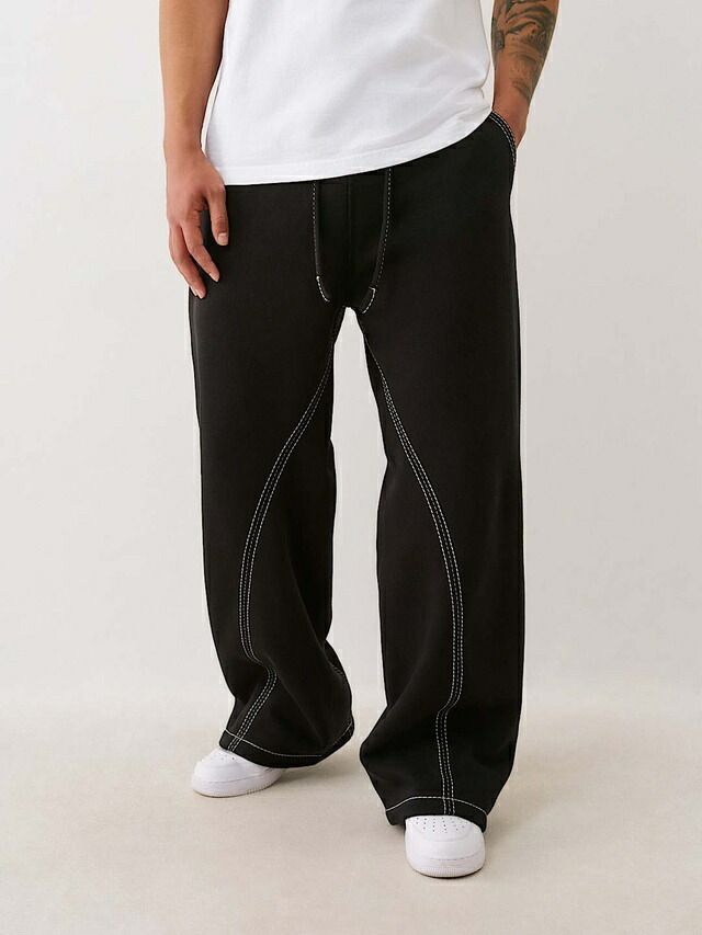 TRUE RELIGION TWISTED TRIPLE BIG T SWEATPANT トゥイステッド トリプル ビッグT スウェットパンツ メンズ 裏起毛 黒 ブラック ワイドパンツ バギーパンツ 太め イージーパンツ ジョガーパンツ ルームウェア