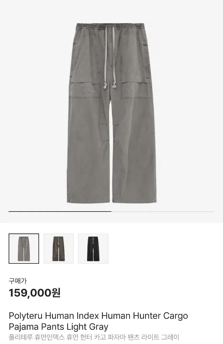 3 ポリテルー ヒューマンメイドインデックス ハンター カーゴ パジャマ パンツ ライトグレー