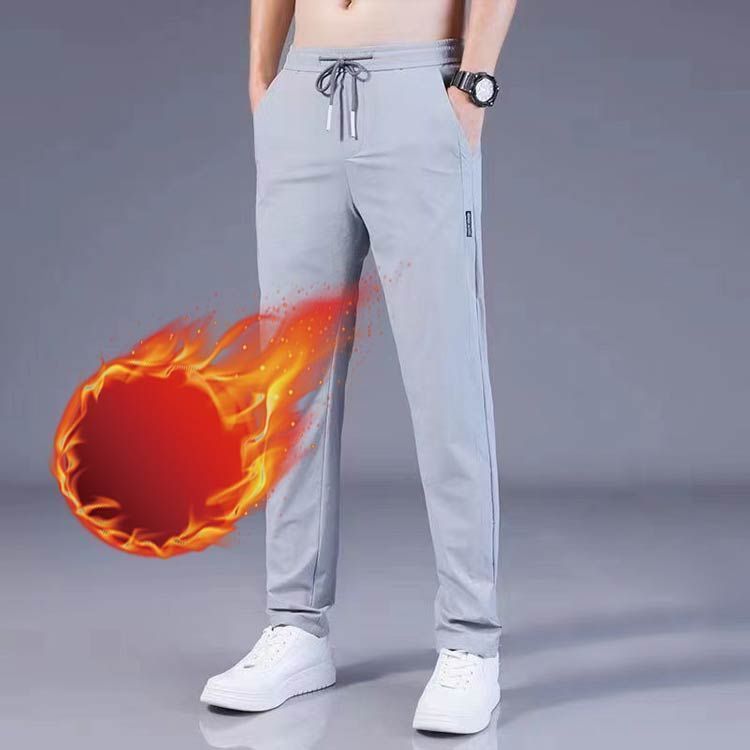 裏起毛で暖かいスリムタイプのメンズチノパンツ。
