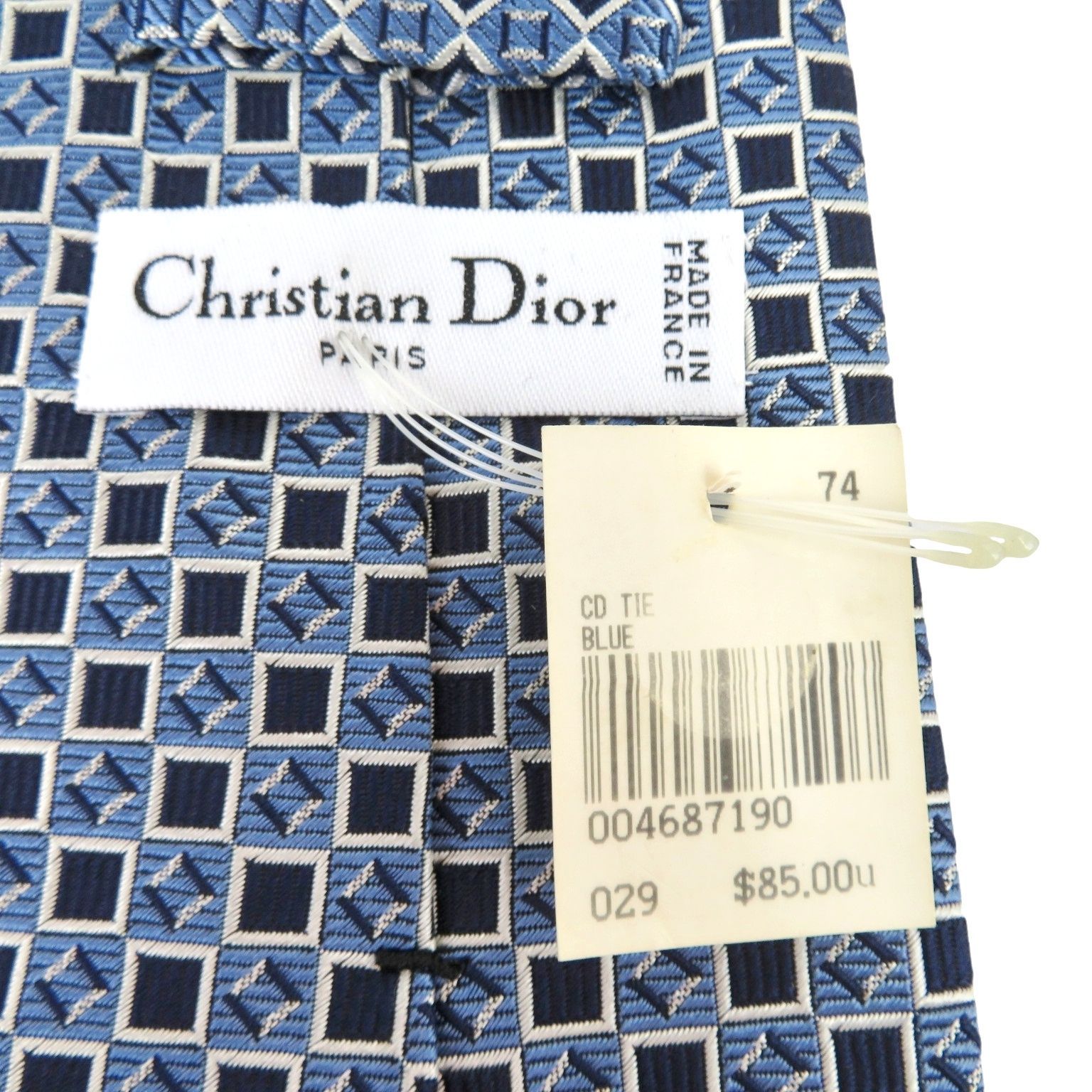 Christian Dior クリスチャンディオール ネクタイ スクエア ブルー系 フランス製 紙袋付き rk 10361