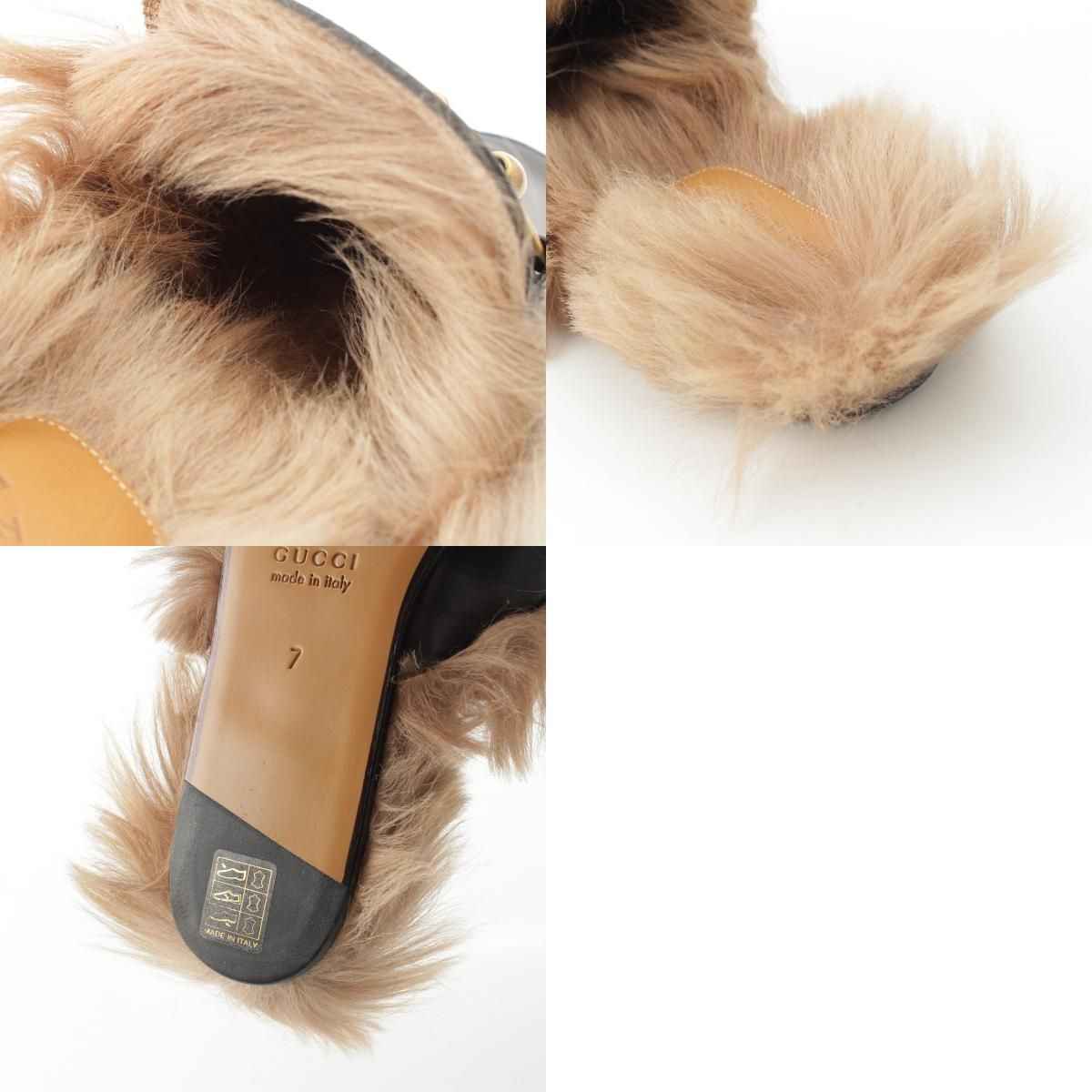 グッチ ファー レザー プリンスタウン ホースビット スリッパ サンダル シューズ ブラック 7