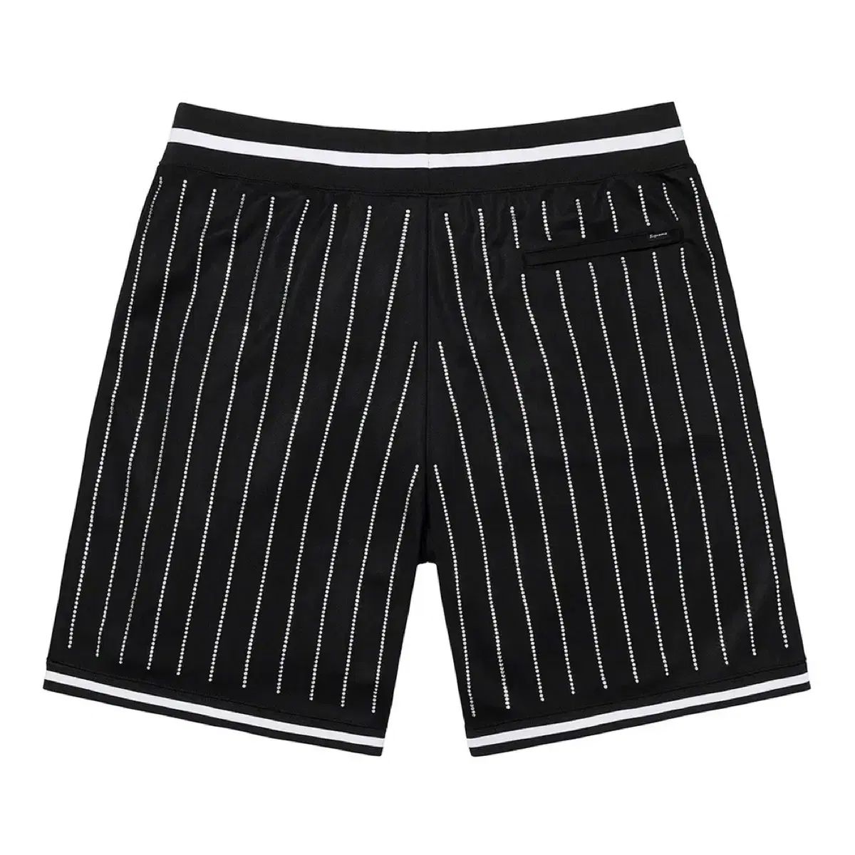 Supreme シュプリーム ラインストーン ストライプ バスケットボール ショートパンツ ハーフパンツ 黒